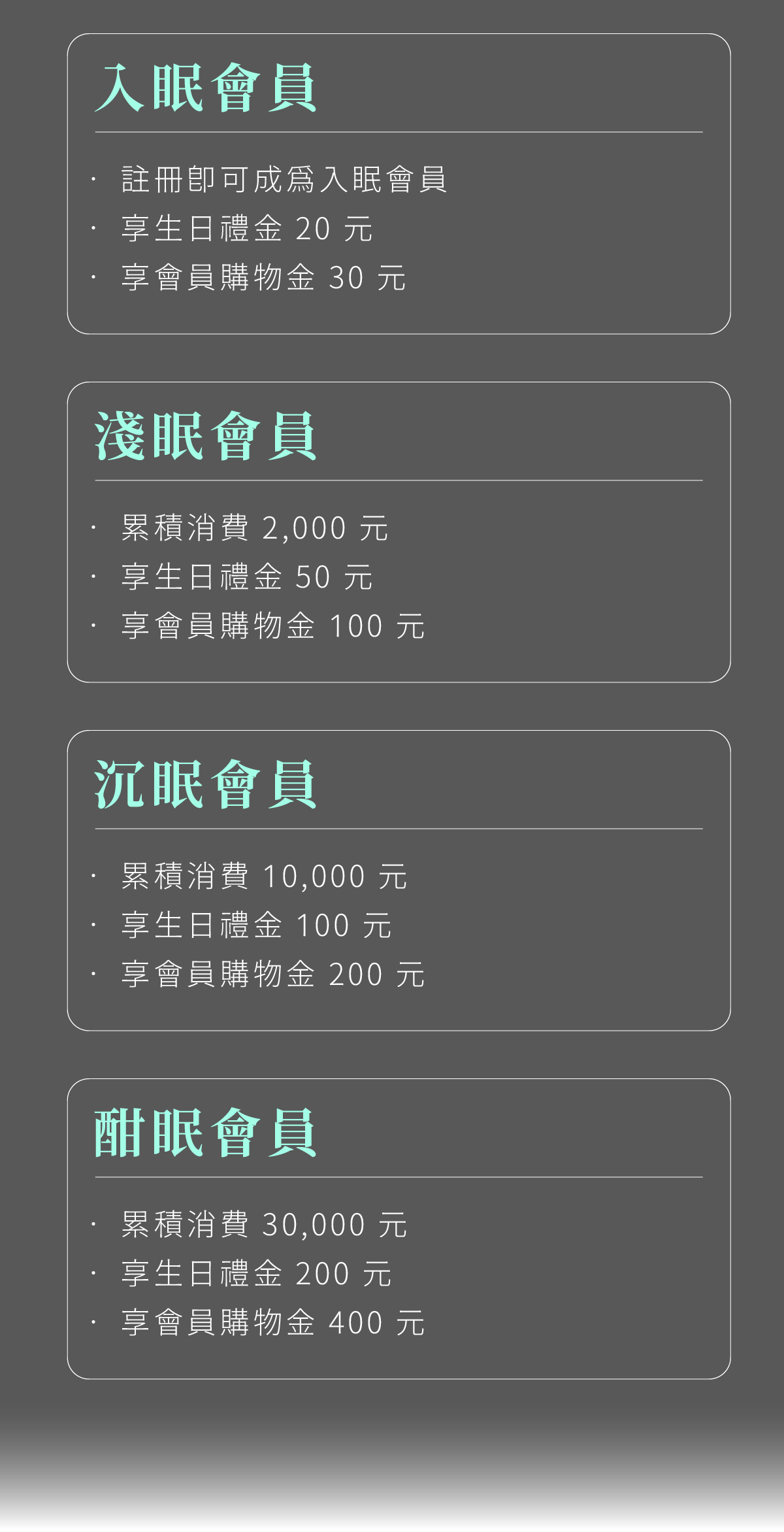 升等說明 — 累積消費金額達到指定門檻,自動升級會員等級,即享會員優惠。